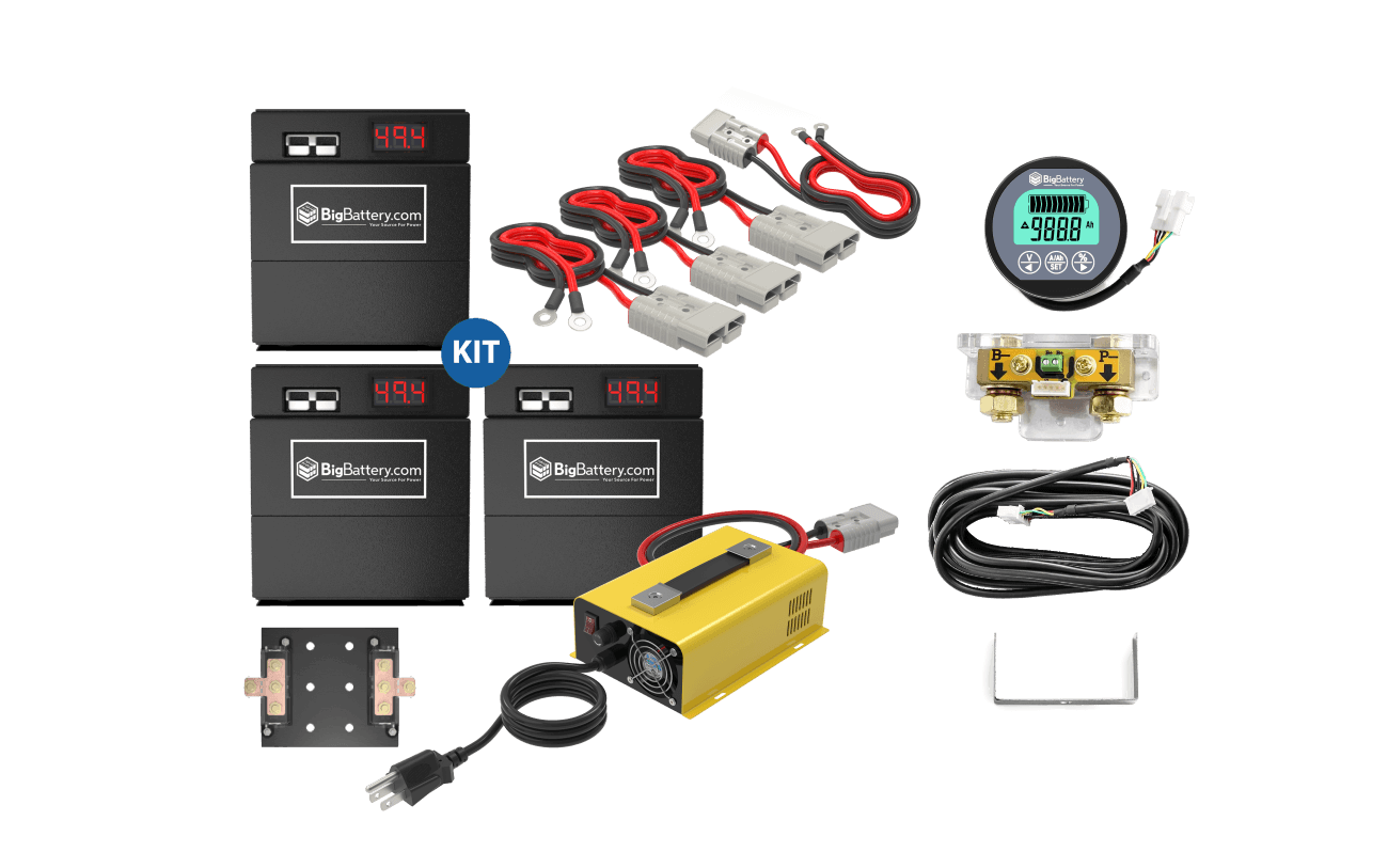 COMPACT CART KITS! BigBattery’s 48V 6.3 kWh NMC 3x BADGER (BDGR) Kit is our most compact all-in-one golf cart solution ever! But don’t be mistaken, the BDGR Kit delivers on reliability, efficiency, and capacity when it comes to powering your cart.