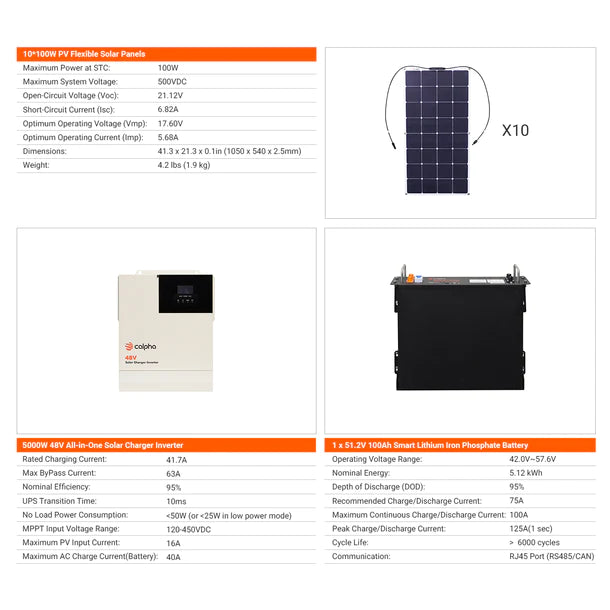 Calpha 1kW 5.12kWh Flexible Solar Panel Kit (5kW Inverter) CC12