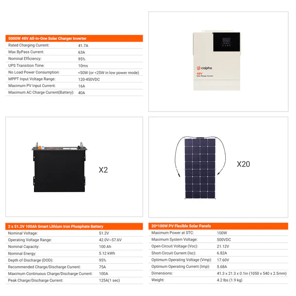 Calpha 2kW 10.24kWh Flexible Solar Panel Kits (5kW Inverter) CC14