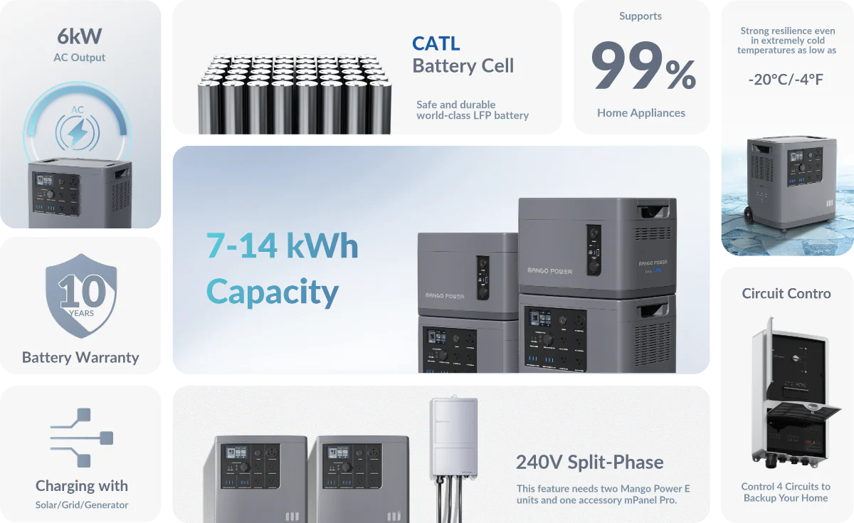 Mango Power E Home Backup Home Backup Kit(2* Mango Power E + 1*mPanel Pro): 6kW/7kWh@240V MPB01US1N028